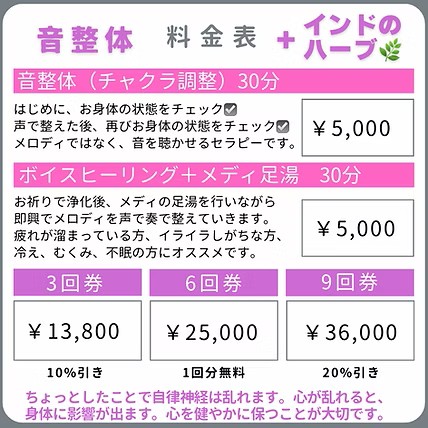 音と占い、インドのハーブの力でニュートラルな状態へ導きます。
